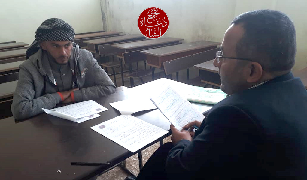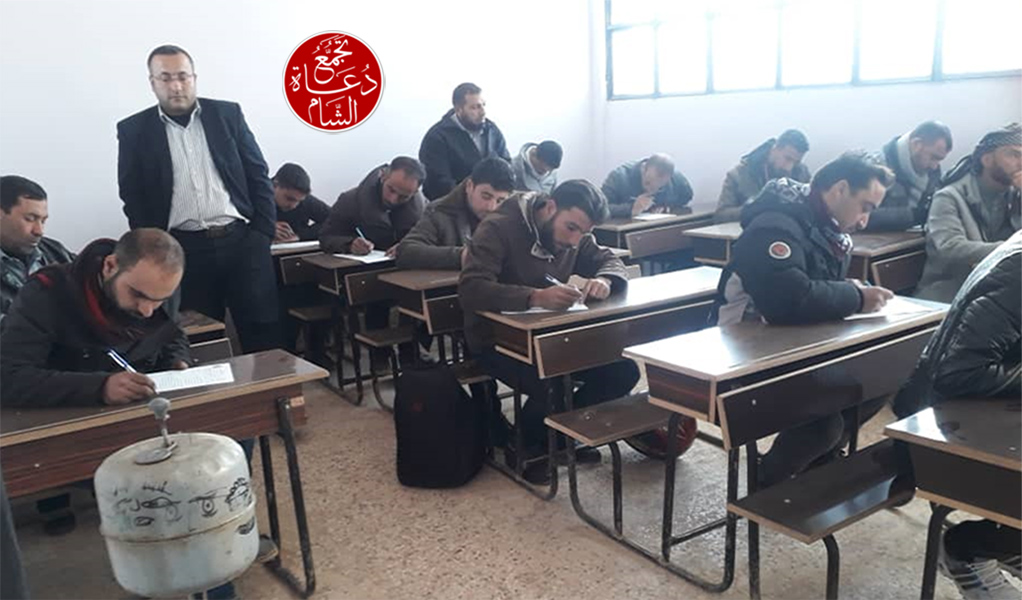 كان ختام هذه الدورات إقامة إمتحانات شفهية وتحريرية في مجموعة من المراكز الامتحانية الموزعة على مناطق الشمال الغربي المحرر (أرياف إدلب وريف حلب الغربي)، بحيث تغطي هذه المراكز أكبر عدد ممكن من الحضور.