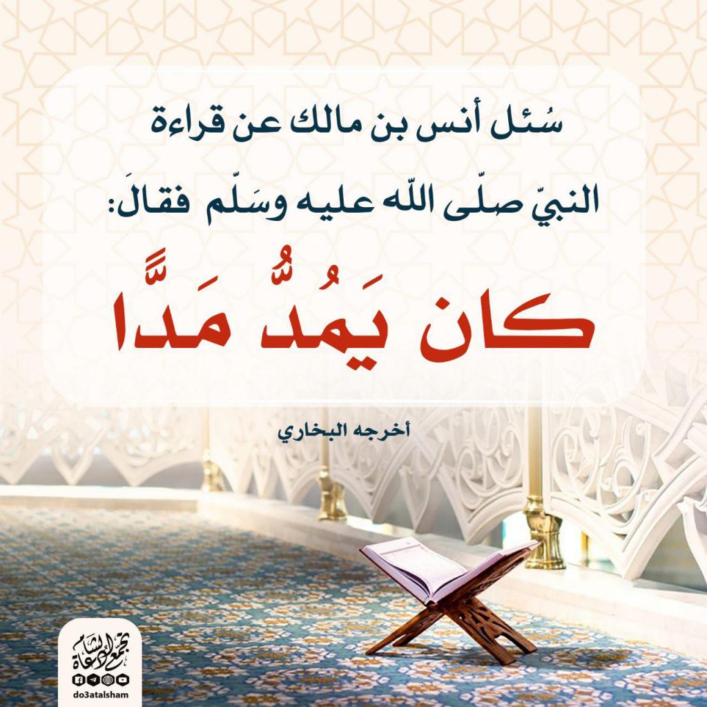 سئل أنس بن مالك عن قراءة النبي صلى الله عليه وسلم فقال: «كان يمد مدا» أخرجه البخاري