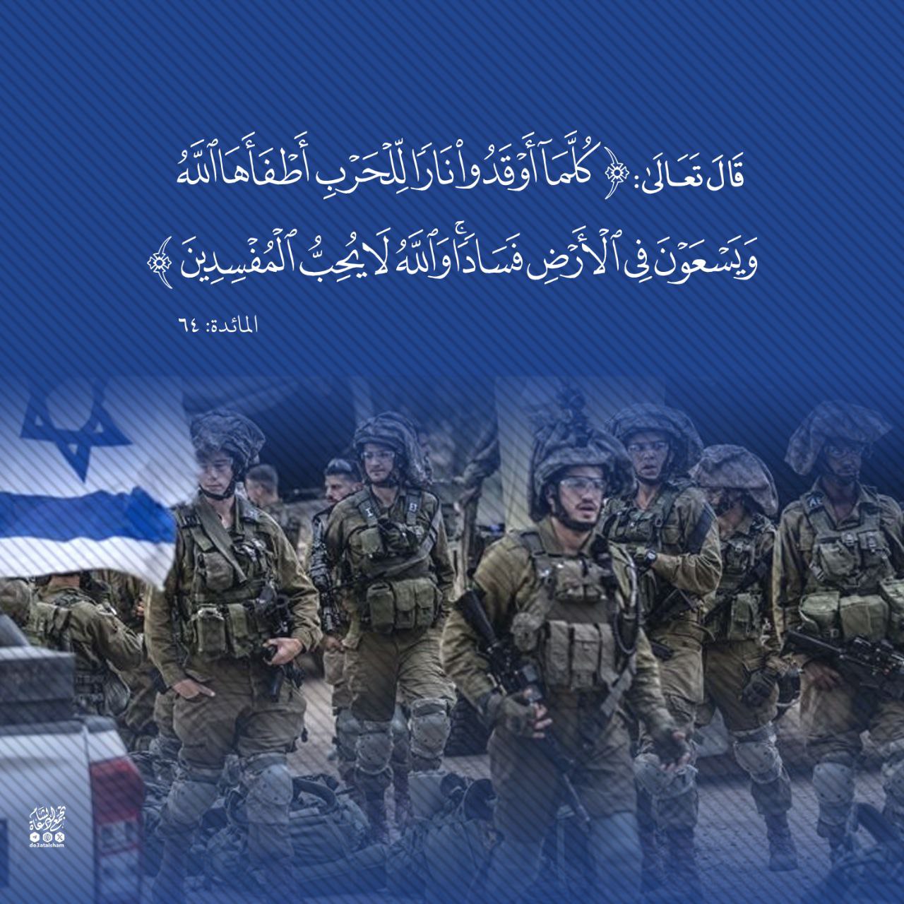 قال تعالى: (كلما أوقدوا نارا للحرب أطفأها الله ويسعون في الأرض فسادا والله لا يحب المفسدين) المائدة 64