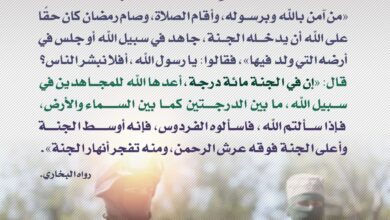ثواب الجهاد في سبيل الله قال رسول الله صلى الله عليه وسلم: «إن في الجنة مئة درجة أعدها الله للمجاهدين…