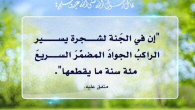 الجنة قال رسول الله صلى الله عليه وسلم: «إن في الجنة لشجرة يسير الراكب الجواد المضمر السريع مئة سنة ما…