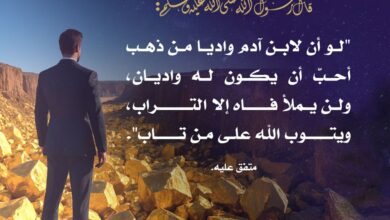 ولن يملأ فاه إلا التراب قال رسول الله صلى الله علیيه وسلم: «لو أن لابن آدم واديا من ذهب أحب…
